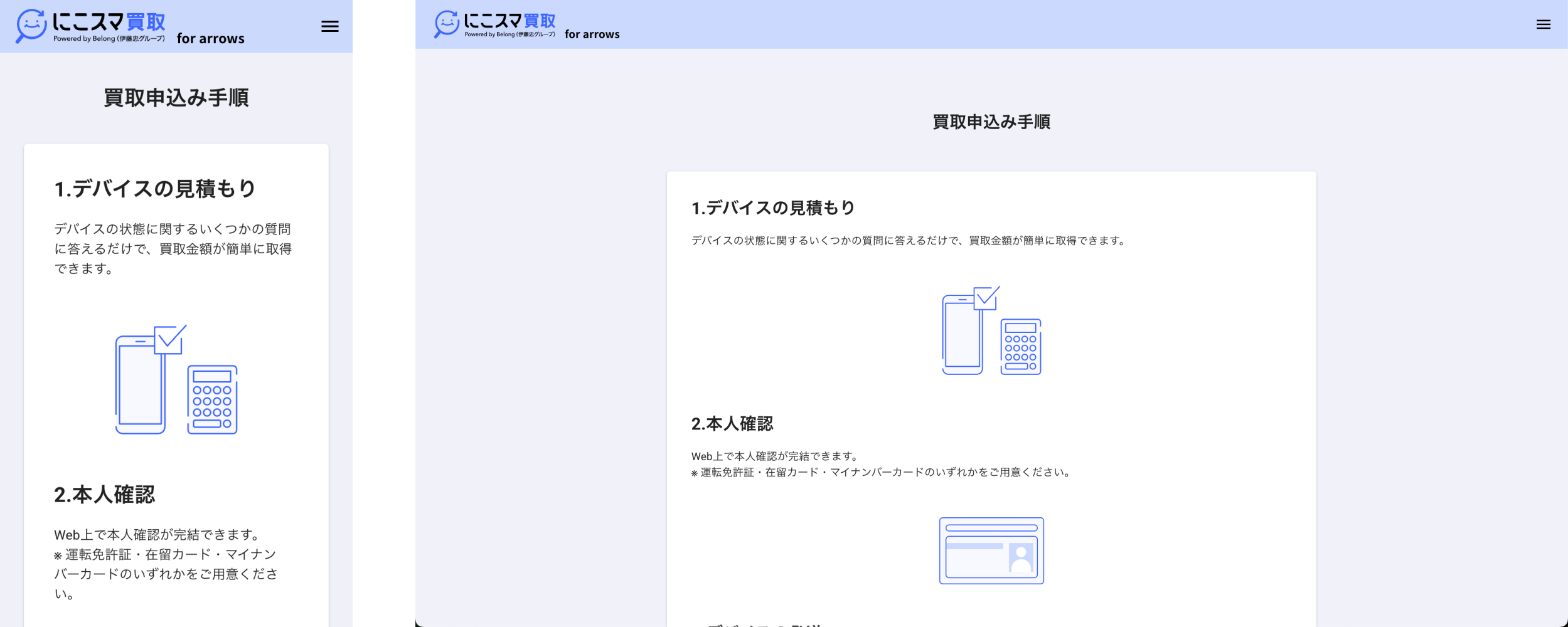 FCNTが運営する会員サービス「La Member’s(ラ・メンバーズ)」にて、Belongの個人向けスマートフォン買取サービス「にこスマ買取」を「にこスマ買取 for arrows」として提供します。各サービスの公式アプリ内に「にこスマ買取 for arrows」への専用リンクを設置し、お客様に買取サービスを案内します。